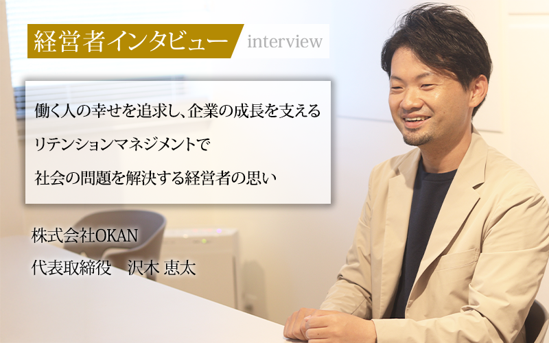 沢木恵太/1985年長野県生まれ。2012年に起業し、株式会社OKANの代表取締役として活動。「働く人のライフスタイルを豊かにする」をミッションに掲げ、望まない離職を生まない組織づくりを支援するためにリテンションマネジメント事業を展開。主なサービスに「ハタラクカルテ」や「オフィスおかん」などがある。健康経営や人材定着(リテンションマネジメント)に関する講演、企業研修、自治体での委員活動など、多方面で専門家として活躍している。