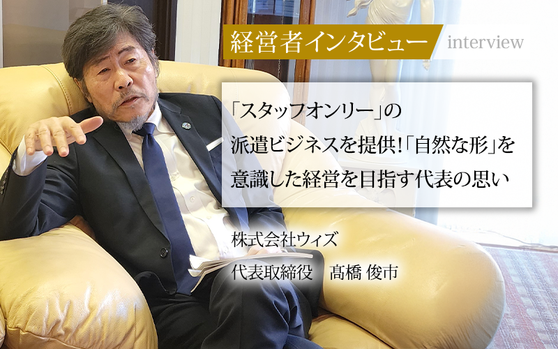 株式会社ウィズは平成元年(since1989)に設立、労働者派遣法が施行された草創期から、派遣業を営んできた。オーナー経営者の髙橋俊市氏は、現在でも第一線の現場で活躍している。35年の歴史の中で年商50億の会社をつくり出してきた背景には、独自の哲学があった。経営者として大切にしてきた思いをうかがった。