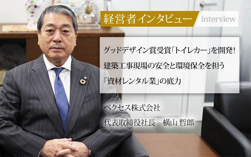 1989年に滋賀県草津市で創業したベクセス株式会社(現在の本社は静岡県浜松市)。戸建て住宅の建築現場を中心に、ガードフェンスやトイレといった仮設資材を提供してきた。代表取締役社長の横山哲郎氏に、就任のきっかけや自社商品の魅力、今後の展望についてうかがった。