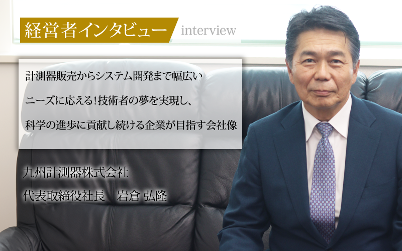 岩倉弘隆/1963年、神奈川県に生まれ、福岡県で育つ。横浜国立大学卒業。株式会社小野測器に入社し、3年の修業期間を経て1988年に九州計測器株式会社に入社。2005年に代表取締役社長に就任。