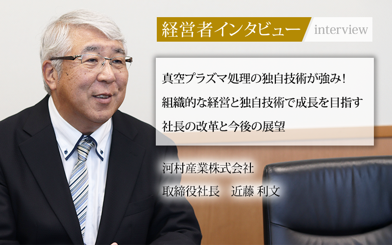 近藤利文/1956年三重県生まれ。早稲田大学大学院理工学研究科機械工学修士。1981年株式会社東芝に入社。製造技術、生産管理、生産企画、経営企画などに携わる。2000年東芝産業機器製造株式会社の取締役、その後常務に就任。2017年定年退職し、河村産業株式会社の取締役社長に就任。ものづくりの改善、デジタル化・IT化・DXに注力。