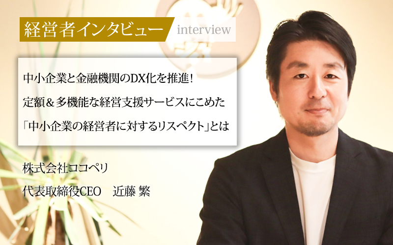 近藤繁/2002年、慶應義塾大学理工学部情報工学科を卒業後、株式会社みずほ銀行に入行し、中小企業向けの融資業務に従事する。2007年、株式会社ココペリを設立し、代表取締役CEOに就任。