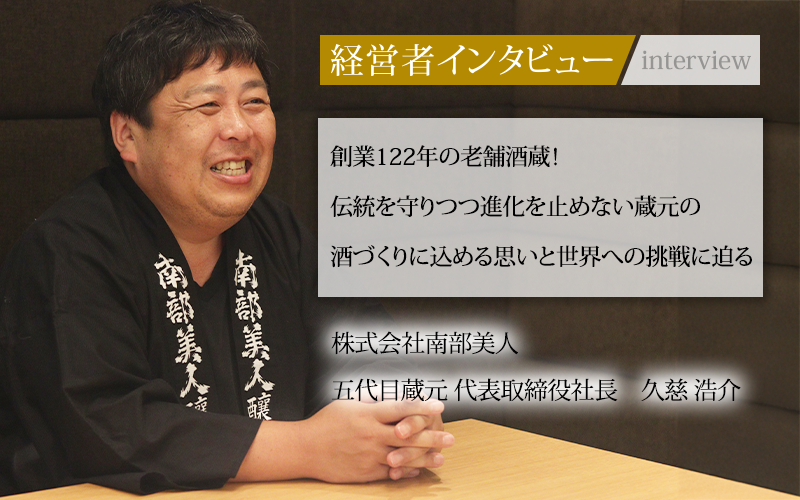 株式会社南部美人は、「日本酒輸出協会」を立ち上げ、全国でもいち早く世界に向けて販路を拡大してきた。1902年の創業以来、「品質一筋」の家訓を守り抜き、日本三大杜氏(とうじ)の一つに数えられる南部杜氏の技術を受け継いで岩手県の代表的な日本酒を製造している。海外進出や新しい酒の開発に力を入れる五代目蔵元である代表取締役社長の久慈浩介氏に、家業を継ぐきっかけとなった出来事や、酒づくりに対する思い、今後の展望についてうかがった。