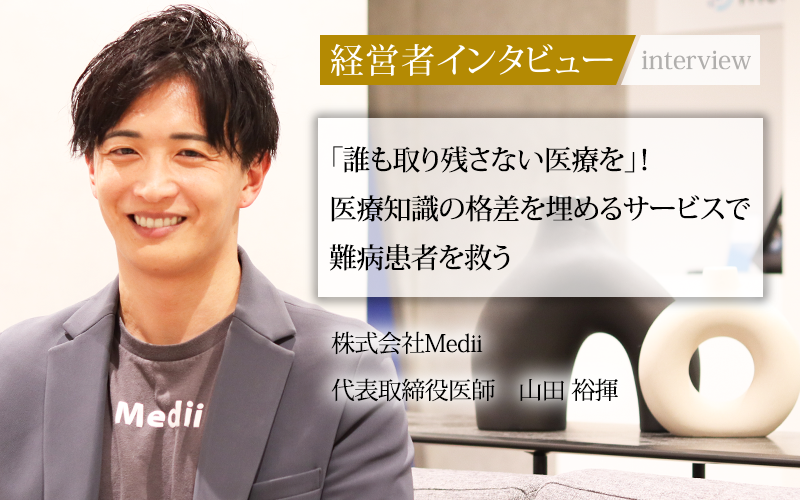 そこで、医師によって医療知識に格差がある現状をどうにかしようと立ち上がったのが、株式会社Mediiの代表取締役医師、山田裕揮氏だ。医師であり自身も難病を患っているという同医師に、起業の経緯やサービスの特徴、今後の展望を聞いた。