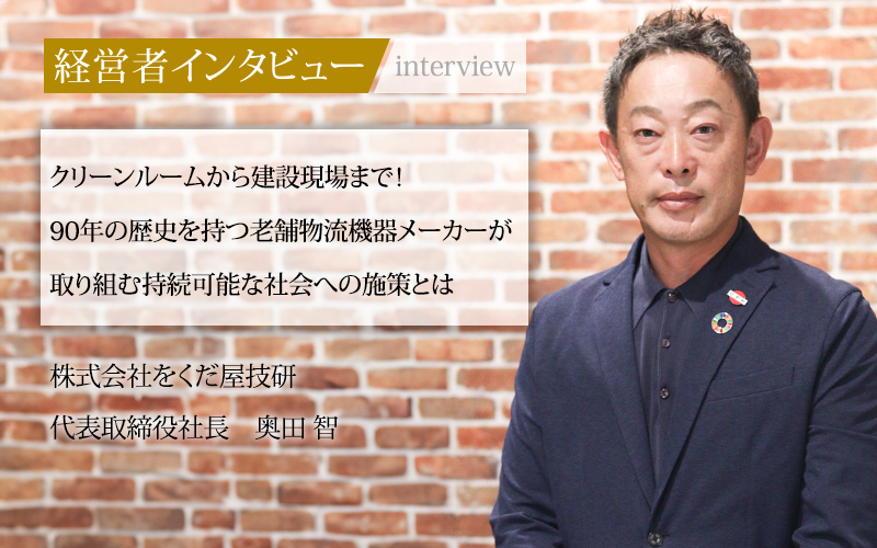 株式会社をくだ屋技研は、創業90年を誇る物流機器の製造・販売を行う企業だ。社会貢献を企業理念に掲げ、ハンドリフトやパワーリフターなどをはじめとした、物流現場の効率化と安全性向上に貢献する製品を開発している。環境に配慮した水圧式機器の開発や、海外展開にも積極的に取り組み、マレーシアや中国に現地法人を設立している。今回は、自身も海外の現地法人での勤務経験を持ち、幅広い視点で社会貢献を目指す同社代表取締役社長の奥田智氏にお話をうかがった。