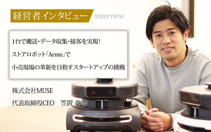 店舗オペレーションの約4割を占める品出し作業。その自動化に挑むスタートアップ企業が、独自のアプローチで小売業界に変革をもたらそうとしている。株式会社MUSEが開発したストアロボット「Armo」は、品出しだけでなく、売り場データの収集や接客・案内まで、1台で複数の業務をこなし、小売店舗の働き方改革を加速させている。世界10カ国以上の開発メンバーとともにグローバル展開を進める、同社代表取締役CEOの笠置泰孝氏に話をうかがった。