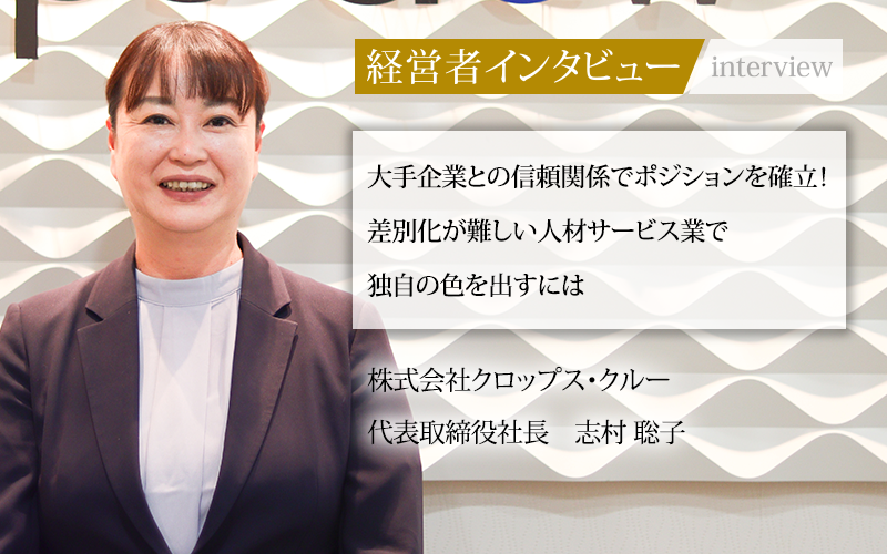志村聡子/1976年、愛知県生まれ。1998年、愛知淑徳大学卒業。同年、株式会社クロップスに入社。2012年に取締役、2017年に常務取締役営業本部長に就任。2020年、株式会社クロップス・クルー代表取締役社長に就任。2024年から日本人材派遣協会中部地域協議会会長。