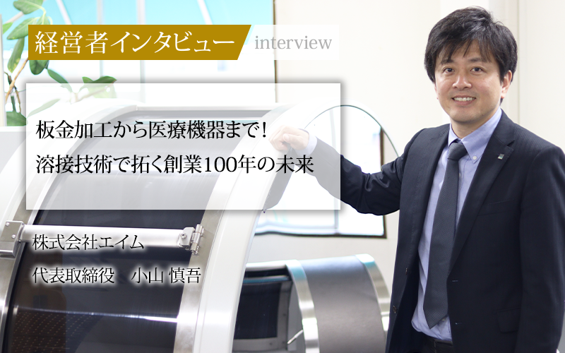 そうした中、伝統的な板金技術を基盤としながらも、半導体製造装置のメンテナンス事業や医療機器分野へ事業領域を拡大し、着実な成長を遂げる株式会社エイム。板金加工の技術を活かし、時代の変化に柔軟に対応しながら、100年企業を目指すという代表取締役の小山慎吾氏に、経営哲学と戦略について、お話をうかがった。