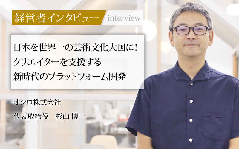 「孤独」を抱えるアーティストやクリエイターを支え、「日本を芸術文化大国にする」ことは、オシロ株式会社の代表取締役、杉山博一氏が思い描く未来だ。