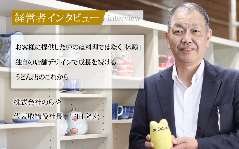 大阪府を中心に、かわいらしい猫のキャラクター「のらちゃん」で有名な、うどん店を展開する「のらや」。このユニークなブランドを率いるのが、株式会社のらやの代表取締役社長である宇田隆宏氏だ。