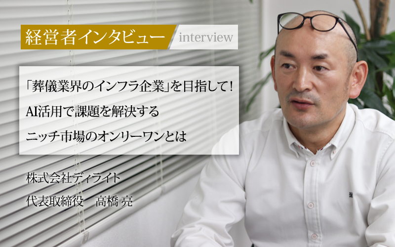 2007年に設立された株式会社ディライト。葬儀業界に特化した人材派遣・紹介サービスからスタートし、そこからさらに業界では珍しかったWeb活用を通して「人材支援事業」「集客支援事業」へと発展している。2015年には一般向けのサービス「葬儀の口コミ」も始動させた。葬儀という分野であえて「ディライト(喜び)」という社名をつけた代表取締役の高橋亮氏に、起業のきっかけや事業の強み、今後の展望についてうかがった。