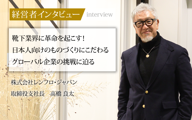 高橋良太/1970年、埼玉県生まれ。1994年に大学を卒業後、伊藤忠グループ会社入社。靴下の製造販売の担当となり、2012年まで伊藤忠商事株式会社にて従事。同年、米国レンフロ・コーポレーションの日本法人、レンフロ・ジャパン株式会社を設立し取締役支社長に就任。