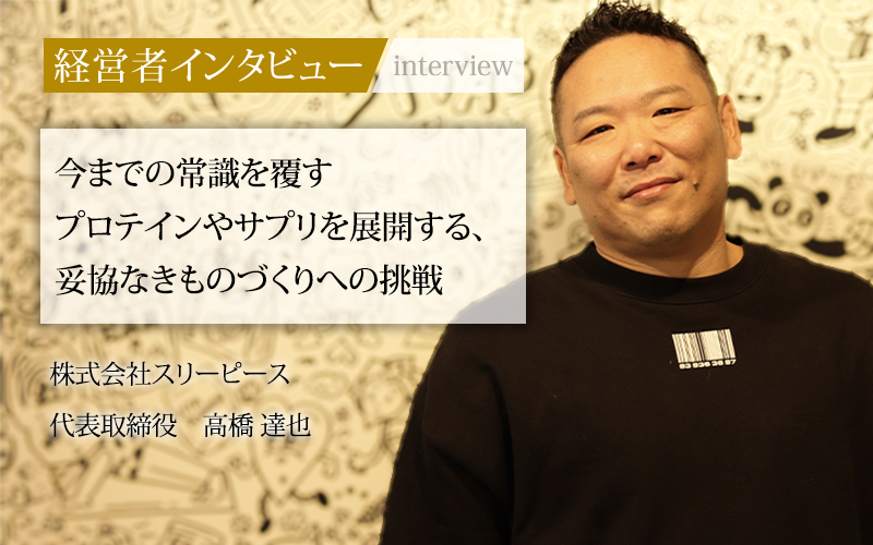 プロテインは身体を作るのに欠かせないタンパク質であり、それを効率良く摂取できるサプリは、主に筋トレをする人に多く愛用されている。そんなプロテインを、筋トレをしている人だけでなく、女性や運動を始めたばかりの方でも気軽に取り入れてもらえるようにと今までにない商品展開を広げる企業が株式会社スリーピースである。