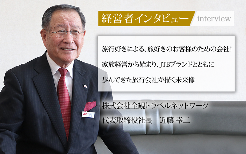 近藤幸二/1952年岡山県生まれ、1975年東海大学卒。1979年全国観光公社(旧社名)入社、1991年に株式会社全観トラベルネットワークへと改組し、現在に至る。2023年観光事業振興功労により「旭日双光章」叙勲。業界・地域の発展に注力。