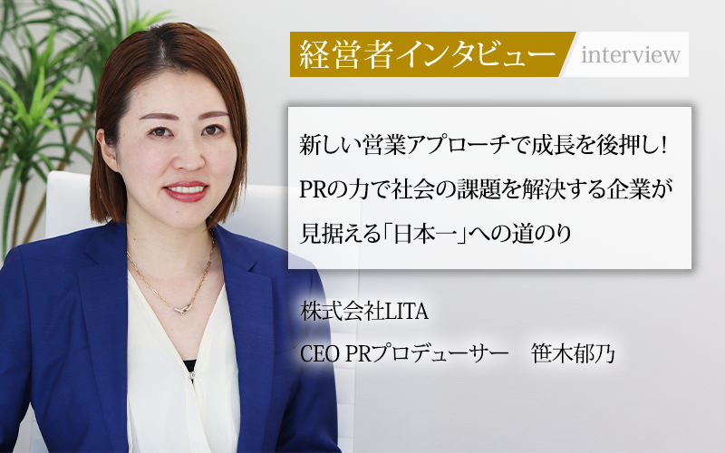 プレスリリースに頼らず、企画書と対面営業を軸とした独自のPR手法で、1,600社以上の企業の成長を支援してきた株式会社LITA。その圧倒的な実績と、これまでに約2,000人の卒業生を輩出したPR塾での教育ノウハウを武器に、急成長を遂げている。社会課題解決への情熱を原動力に、次世代のPRの形を創造し続けるCEOの笹木郁乃氏に話をうかがった。