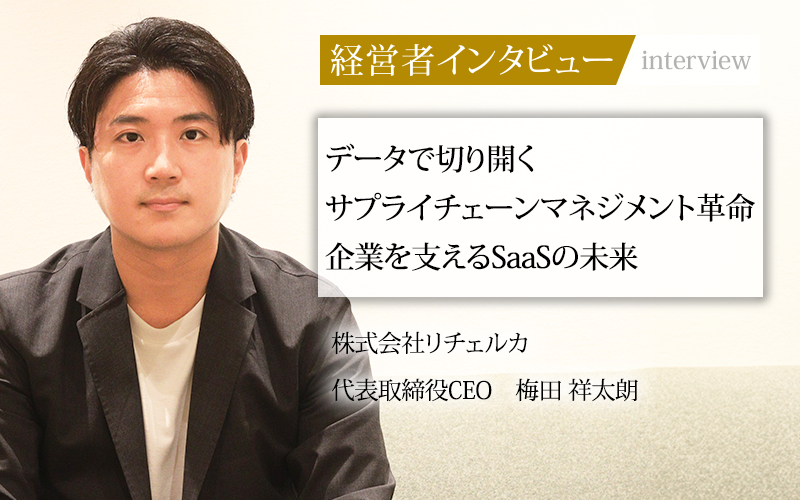 株式会社リチェルカは、サプライチェーンマネジメントに特化したSaaS「RECERQA SCM」を開発し、在庫管理や受発注業務の効率化を目指す企業として注目を集めている。銀行、ITベンチャー、ブロックチェーン業界など、異業種での豊富な経験を持つ代表取締役CEOの梅田祥太朗氏に、起業の背景や事業へのこだわり、そして将来の展望について話をうかがった。