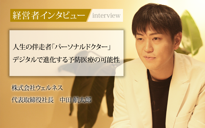 今回は、日本の医療モデルに疑問を投げかけ、新しいカルチャー創出に挑む株式会社ウェルネスの代表取締役社長、中田航太郎氏から、これまでの歩みや医師としての思い、そして未来への展望をうかがった。