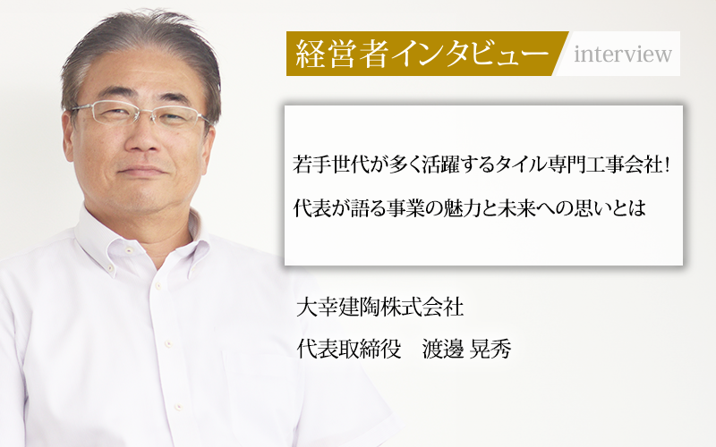 建設業界では若手人材が減少し、職人の高齢化が喫緊の課題となっている。そんな中、大幸建陶株式会社は平均年齢が低く、若手社員が多数在籍しているタイル専門工事会社だ。平均年齢が若い組織ならではのメリットや、タイルの魅力、タイル施工のやりがいなどについて、代表取締役の渡邊晃秀氏にうかがった。