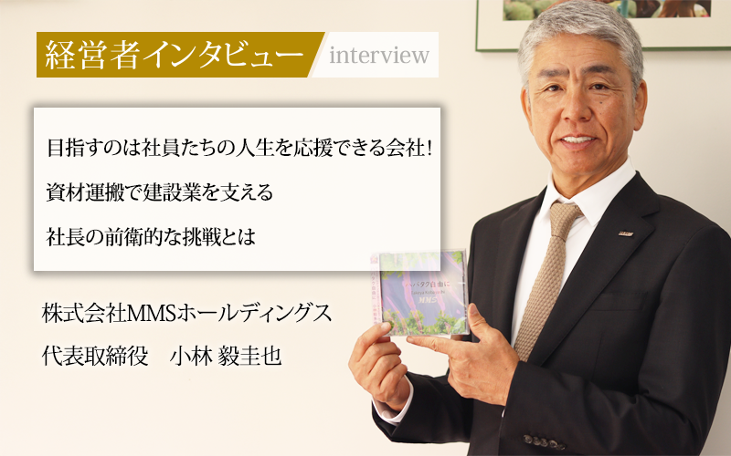 建設現場での資材運搬を主軸に、人材派遣やマンション運営、飲食、農業といった多角的な事業を展開する、株式会社MMSホールディングス。同社を率いる代表取締役の小林毅圭也氏は、28歳という若さで創業し、新たな事業を生み出しながら会社を成長させてきた。小林社長の挑戦の軌跡と経営者の信念、そして未来への展望に迫る。