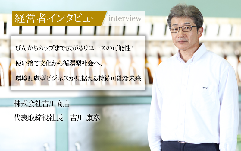 さらに、使い捨て容器削減のニーズに応え、量り売り店やイベント等でのリユースカップ事業も展開する同社。今回は、環境負荷低減に向けた取り組みを重ねる同社の歩みについて、代表取締役社長の吉川康彦氏に話をうかがった。
