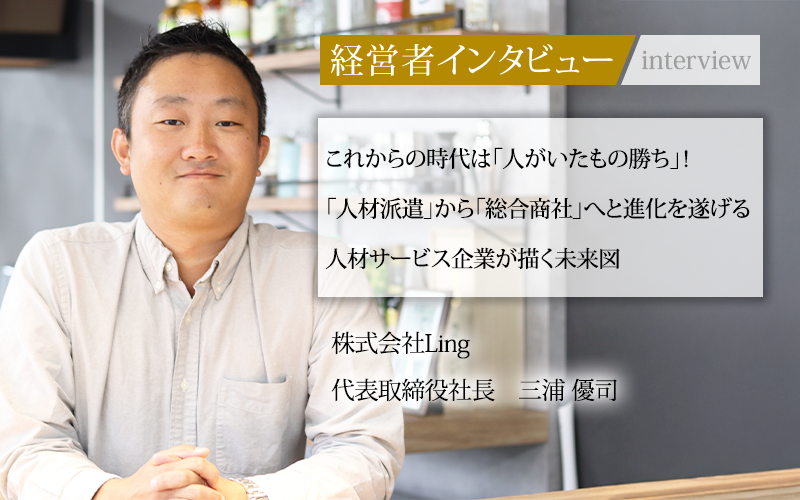 三浦優司/1987年生まれ。高校卒業後、人材派遣会社に入社。営業職に従事する。2011年に退職し、翌年に株式会社Lingを設立。人材派遣から営業管理、スタッフ育成などを提供。近年ではICT事業をスタートさせるなど「企業向けサービス総合商社」として業績を伸ばしている。