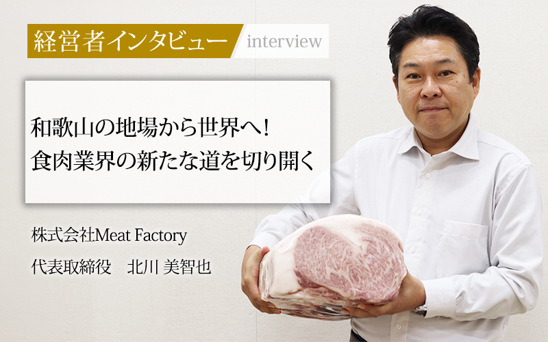 株式会社Meat Factoryは、伝統的な和牛の取り扱いからジビエまで、地域に根差した食肉ビジネスの可能性を追求している。父から受け継いだ精肉卸売業を再建し、「和歌山から世界へ」を掲げ、ECサイトの展開や海外輸出にも積極的に取り組む予定の同社の北川美智也代表取締役に、これまでの歩みと未来への展望を聞いた。