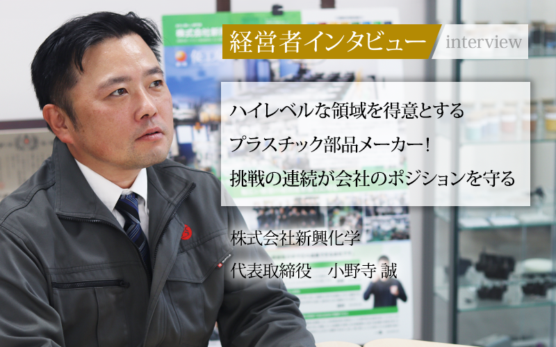 ハイスペックなプラスチックの射出成形加工をはじめ、幅広いジャンルの部品を扱う株式会社新興化学。同社が広く信頼されている背景には、長年の経験や技術の蓄積、そして、複雑な課題にも積極的に取り組む姿勢がある。今回は、代表取締役の小野寺誠氏に、経営における戦略や新興化学の強み、未来への展望などを聞いた。