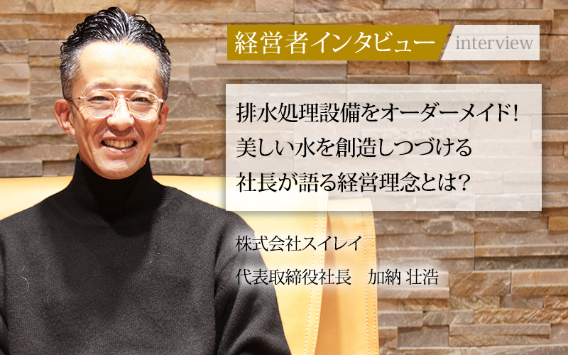 株式会社スイレイは、1970年に創業した排水処理施設の設計・施工・管理事業を行う会社だ。設備機器の販売だけではなく、クライアント企業へのコンサルティングに注力し、排水のリサイクルシステムや凝集沈澱ろ過システムなど、オーダーメイドの設備を企業に提案している。
