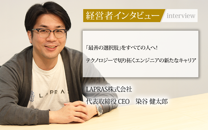 染谷健太郎/2009年に東京大学文学部を卒業し、株式会社リクルートジョブズに入社。営業にて表彰を複数回受賞後、新規事業開発を担当し、複数のSaaSサービスなどの新規事業立上げを推進。担当サービスにて「日本HRチャレンジ大賞人材サービス優秀賞」や「グッドデザイン賞」を受賞。2018年にLAPRAS株式会社へプロダクトマーケティングマネージャーとして入社。2022年より代表取締役 CEOに就任。