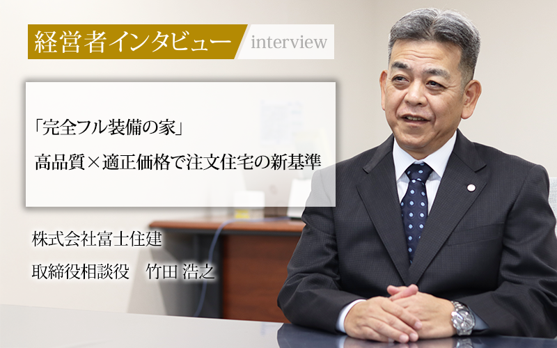 そんな人々の思いに寄り添い、一般的にはオプション扱いとなる設備も標準装備に含めて提供するのが、株式会社富士住建の注文住宅『完全フル装備の家』である。取締役相談役である竹田浩之氏に、顧客への真摯な思いと、全国展開を視野に入れた企業戦略についてお話をうかがった。
