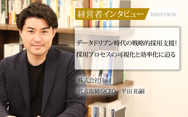 多くの企業が抱える採用難という課題に注目し、画期的な次世代型の採用支援ソリューションを生み出した株式会社Haulの代表取締役CEO、平田拓嗣氏。学生時代から起業を志し、自らの信じる道を突き進んだそのバイタリティーに驚かされた。