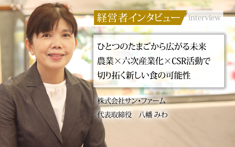 「ひとつのたまごから広がる君(黄身)の幸せ」というビジョンを掲げ、農業の可能性を切り拓き続けている株式会社サン・ファームだ。子どもの貧困問題への支援にも取り組む同社の代表取締役、八幡みわ氏に、その挑戦についてうかがった。