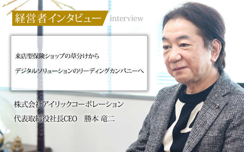 さらに、独自開発したデジタルシステムは、保険業界のDXを牽引する存在に成長している。運営するのは株式会社アイリックコーポレーションだ。創業者で代表取締役社長CEOの勝本竜二氏に「保険クリニック」誕生の背景や、同社が手掛ける他事業についてうかがった。