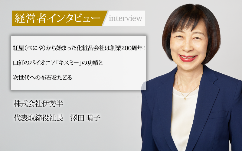 澤田晴子/大学卒業後、商社勤務やカルチャースクール講師などを経て、約20年間企業教育コンサルタントとして活躍。2003年伊勢半グループ入社。最後の紅屋・伊勢半の紅づくりや日本の化粧文化を伝える「紅ミュージアム」設立や、あざ・傷あと・白斑など肌色に悩みを抱えた方むけのカバーメイク化粧品を販売するグループ会社「マーシュ・フィールド株式会社」の社長などを歴任。2009年、株式会社伊勢半の社長に就任し現在に至る。