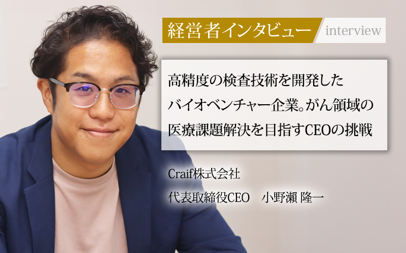 国民の2人に1人ががんになり、3人に1人が亡くなっている日本。細胞間のコミュニケーションを担う伝達物質であるマイクロRNAをAIで解析し、がんのリスクを判定する検査キットを開発・提供しているのが、Craif株式会社だ。同社のビジョンとして「人々が天寿を全うする社会の実現」を掲げる背景や今後の展望などについて、代表取締役CEOの小野瀨隆一氏にうかがった。