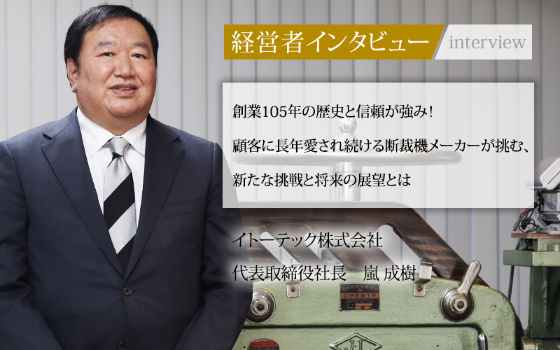 嵐成樹/1964年、熊本県生まれ。熊本商科大学(現:熊本学園大学)商学部卒業後、1987年にイトーテック株式会社へ入社。東京支店営業課長、東京支店支店長、取締役営業本部長、専務取締役などを歴任。2021年、代表取締役社長に就任。