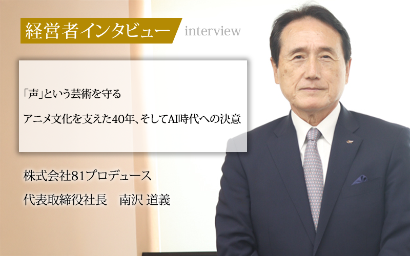閉塞的だったエンターテインメント業界に新たな風を吹き込み、声優という職業の可能性を広げることに力を尽くした南沢社長。その果敢な挑戦が、声優という文化を築き、活躍の場を押し広げる原動力となったのだろう。デジタルボイス技術がどれほど進化しようとも、キャラクターに生命を吹き込む声優の声に勝るものはないはずだ。その価値を示すために、株式会社81プロデュースはこれからも歩み続ける。