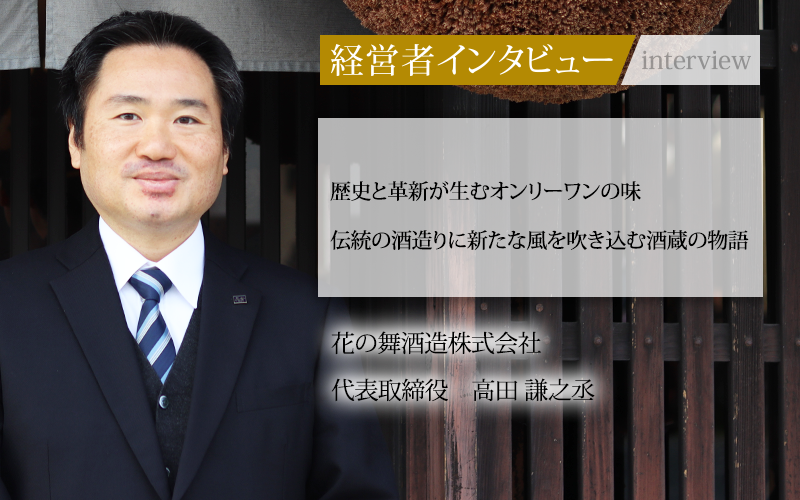 海外での販路拡大や、国内で進む日本酒離れの抑止が大いに期待される。そんな注目の集まる業界で、創業160年の歴史を誇るのが花の舞酒造株式会社である。代表取締役の高田謙之丞氏に、飲みやすさと楽しさを追求した日本酒開発の魅力や、その背景にあるこだわりについてうかがった。