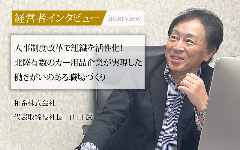 オートバックス(車用品店)のフランチャイズ加盟企業として、石川県下で10店舗を展開し、県内の自動車免許保有者の50%前後の会員を有する和希株式会社。同社はテレビCMに社員を起用し、働きがいの向上と知名度アップを同時に実現するほか、「チャレンジ制度」を導入し、社員が自ら描くキャリアプランの実現を強力にバックアップしている。