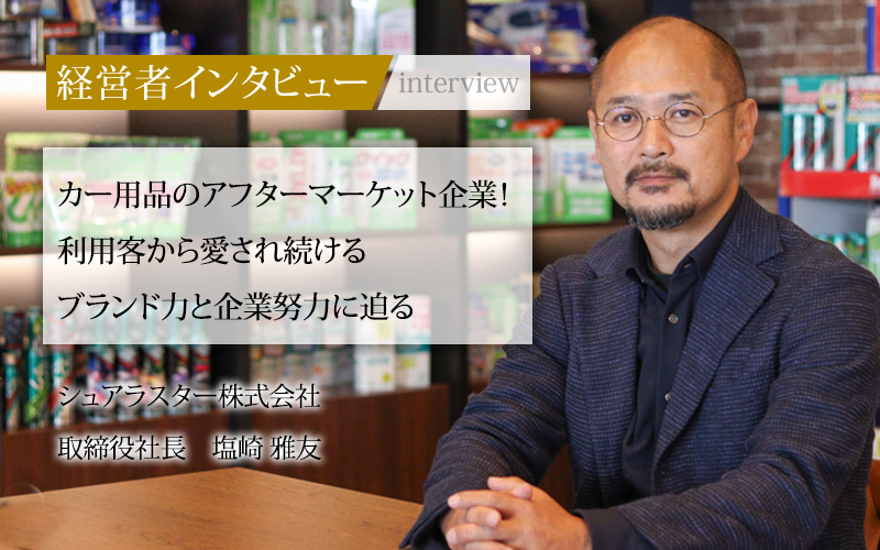 カー用品は車には欠かせないが、車そのものへの嗜好性の低下や若者の車離れが原因で、車のアフターマーケットへも大きく影響を及ぼしている。その中でも業績を伸ばしているシュアラスター株式会社。今回は取締役社長の塩崎雅友氏に、カー用品のアフターマーケットの業界の変化と、同社がどのような戦略で業績を伸ばしているのかといった点や今後の展望などについてうかがった。