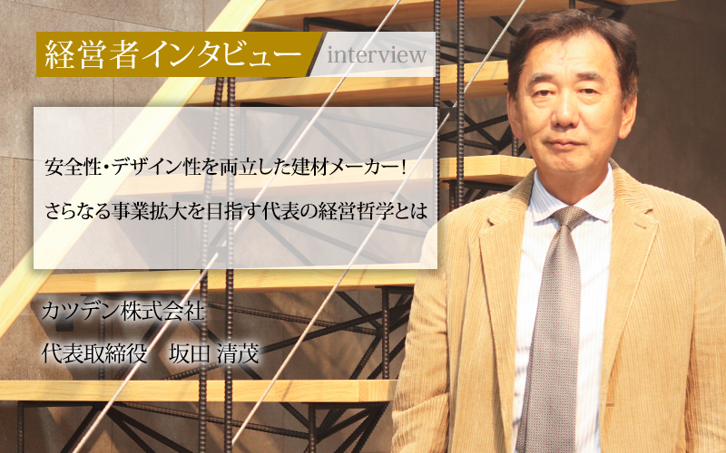 坂田清茂/1962年、東京都生まれ。東洋大学工学部建築学科を卒業後、カツデン株式会社に入社。営業、開発、品質管理など幅広い部門を経験し、積水化学工業株式会社住宅総合研究所にてゲストエンジニアとしても従事。1994年に建材事業務の美里工場生産管理部長として工場改革を主導。その後、常務取締役ビル建材本部長、建材統括本部長を歴任し、2003年よりカツデンアーキテック株式会社(現:カツデン株式会社)代表取締役に就任。