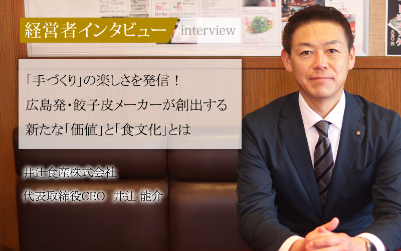 1947年に創業した井辻食産株式会社は、スーパーマーケットなどに並ぶ「餃子の皮」において「西日本No.1」のシェアを誇る食品メーカーだ。1967年からは、外食産業にも進出し、中華料理やイタリア料理のチェーン店を展開。2011年には、さらに新店舗として「餃子家 龍」を開店している。代表取締役CEOの井辻龍介氏に、同社の歴史や強み、社会貢献事業、今後の展望についてうかがった。