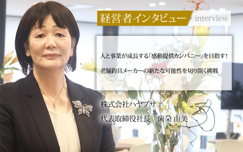 歯朶由美/1960年兵庫県生まれ、武庫川高校卒業。1979年株式会社ハヤブサに入社し2009年同社代表取締役社長に就任。親会社であるハヤブサホールディングス株式会社代表取締役社長、海外現地法人ハヤブサベトナム、青島ハヤブサ、ミャンマーハヤブサ、ホッタハブ株式会社(ペット事業)の代表取締役も兼任。社長就任以来女性の釣り人を増やす活動に注力している。また新たな柱とするべく、ペット事業や廃校を利活用する事業にも取り組む。