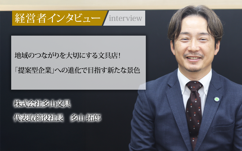 創業以来、文具の販売を通じて地域に根差してきた株式会社多山文具。その代表取締役である多山拓郎氏が目指すのは、単なる商品提供を超えた新しい価値の創造だ。文具でも、パンでも、受け身でなく積極的に相手に向かう姿勢が印象に残る。私たちは、気づいていても言葉にできない日常の悩みを数多く抱えている。そんなとき、株式会社多山文具を頼ると、暮らしを彩るヒントや提案に出会えるかもしれない。