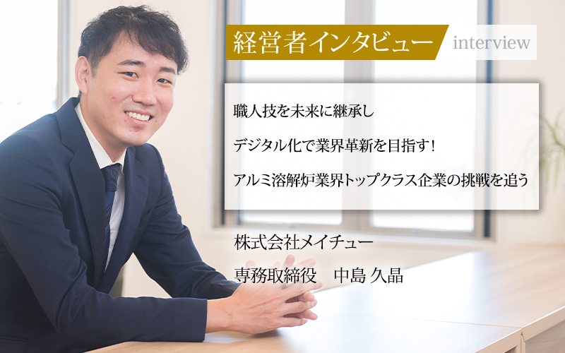 このような状況下で、アルミ溶解炉でトップクラスのシェアを誇る老舗企業、株式会社メイチューの次期経営者である専務取締役の中島久晶氏に、伝統と革新のバランスを取りながら次世代の在り方を模索する取り組みについて話を聞いた。