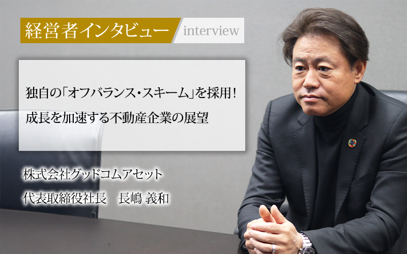 そんな激動の不動産業界で、独自のオフバランス(※)・スキームを活用し、急成長を遂げているのが株式会社グッドコムアセットだ。今回は、代表取締役社長の長嶋義和氏から創業までの道のりや成長戦略、成功の秘密をうかがった。