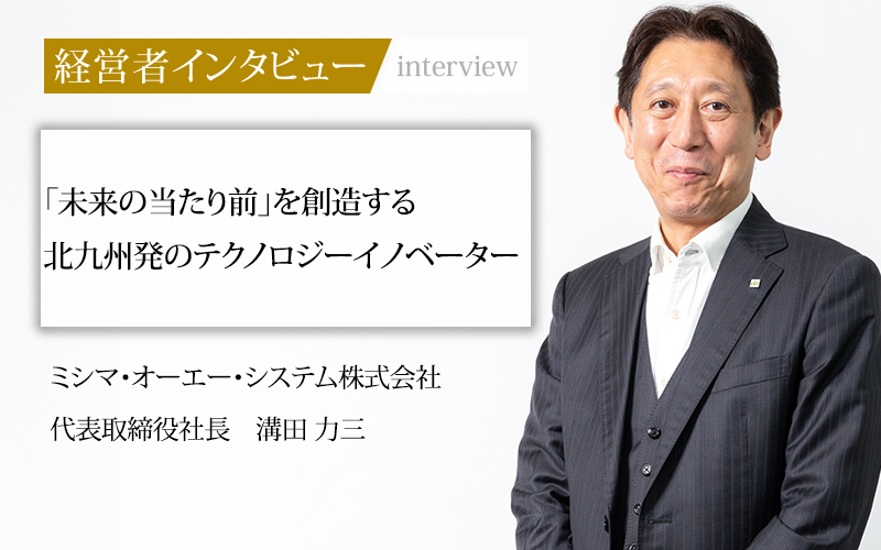 溝田力三/1972年福岡県北九州市生まれ。1992年ミシマ・オーエー・システム株式会社へ入社後、営業部門を経て、2017年に代表取締役社長へ就任。営業経験で培った地域内外の人的ネットワークを事業へ活用し、「誰も想像していないステキなことを創造して 未来の当たり前を“今”、やってみる」を経営理念に社員誰もがチャレンジできる社内環境作りを行っている。2020年北九州工業高等専門学校客員教授へ就任。