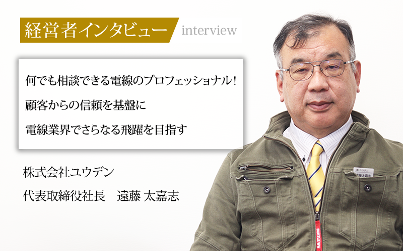 電気を送る電線は、現代社会に不可欠なインフラの一つである。1982年の創業以来、耐熱電線や補償導線、FAケーブル、ロボットケーブルなど、電線の専門商社として実績を積み重ねてきた株式会社ユウデン。