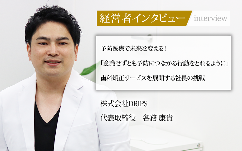 日本の保険診療制度においては、病気になってから医療機関を受診するケースが一般的で、健康な人のための「予防医療」はできない。そのような中で、株式会社DRIPSは、マウスピース歯科矯正サービス「hanaravi(ハナラビ)」を始めとする数々の医療サービスを展開している。
