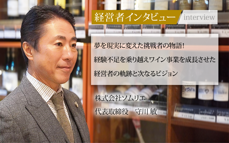 「好きだから」といって事業を始めても、十分な知識や経験がなければ、どれほど情熱を注いでも成果は上がらない。好きだからこそ、楽しさだけではなく現実的な経営判断や計画性が求められる。東京六本木を拠点に、ワインの輸入・販売をはじめ、「ワインと食の総合ビジネス」を展開する株式会社ソムリエの代表取締役である守川敏氏も、起業当初は数々の困難に直面し、試行錯誤を繰り返した末に現在の成功をつかんだ。